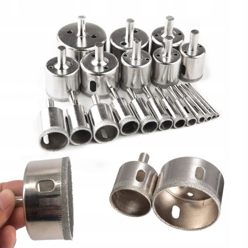ZESTAW SOLIDNYCH OTWORNIC DIAMENTOWYCH 20 SZT 2-50 MM DO PŁYTEK SZKŁA