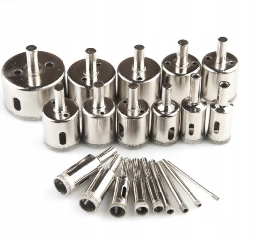Zestaw składa się z 20 wierteł diamentowych o różnych najpopularniejszych średnicach.