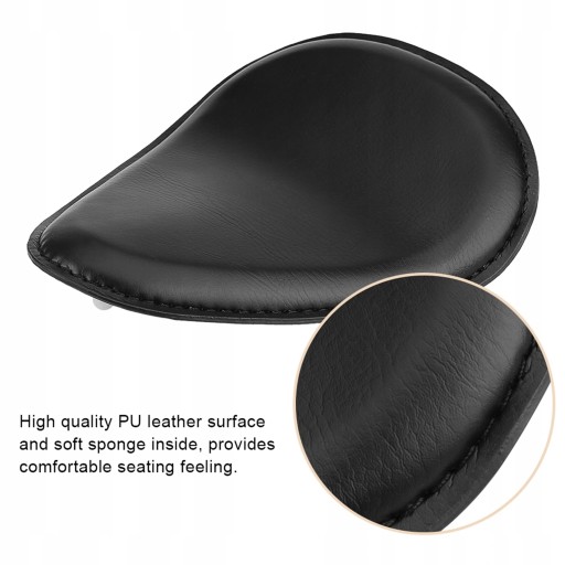 Cechy: Wysokiej jakości skórzana powierzchnia i miękka gąbka wewnątrz zapewniają komfort siedzenia. Przeciwciśnieniowy i niełatwy do wyblaknięcia, może być używany przez długi czas. Wspornik i sprężyna montażowa wykonane z wytrzymałej stali pomagają pewnie zamocować siedzisko. Vintage design, odśwież wygląd motocykla, zwiększ swój styl wyścigowy. Pasuje do większości motocykli, takich jak Honda / Yamaha / Kawasaki / Suzuki / Bobber / Chopper.