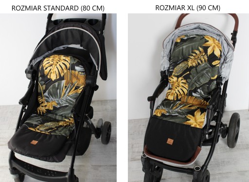 Rozmiar XL (90 cm) pasuje do większych wózków, z przedłużonym siedziskiem na nóżki (nie typ parasolki) lub z zestawów 2w1.