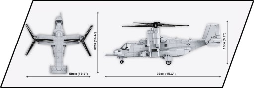 Klockowy model Bell-Boeing V-22 Osprey został wydany na licencji amerykańskiego producenta śmigłowców bojowych, firmy Bell Helicopter Textron. Opracowany w skali 1:48 pasującej do reszty kolekcji Armed Forces model składa się z 1090 elementów i zawiera dwie figurki przedstawiające pilotów. W zestawie znajduje się nowy wzór figurki kobiecej! Długość modelu wynosi 390 mm, szerokość to aż 500 mm! Na potrzeby zestawu zostały opracowane zupełnie nowe elementy, które sprawiają, że nasz model jest jeszcze lepszy! Klockowy model został pokryty trwałymi nadrukami, które nie ścierają się nawet w trakcie intensywnego użytkowania. Najważniejsze funkcjonalności to gondole napędowe, które można ustawiać w różnych pozycjach, obracające się łopaty wirników, otwierane drzwi kabiny wraz ze schodkami, dostęp do kabiny pilotów i możliwość umieszczenia tam figurek oraz otwierana tylna klapa załadunkowa. Do zestawu dołączony jest klocek z nazwą modelu. Ten niezwykły tiltrotor/zmiennowirnikowiec to idealny zestaw dla kolekcjonerów, fanów militariów, lotnictwa i historii.