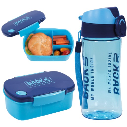 Zestaw bidon i śniadaniówka z dwiema przegródkami BackUP - niebiesko-granatowy