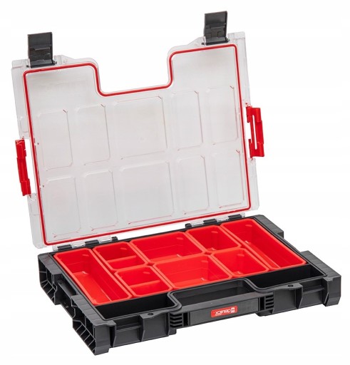 Qbrick System PRO Organizer 200 to kompaktowa skrzynka organizująca na narzędzia. Służy m.in. do przechowywania śrubek, części elektrycznych jak i narzędzi. Znajdzie swoje zastosowanie zarówno u wielu elektryków, monterów, jak również w warsztatach samochodowych.