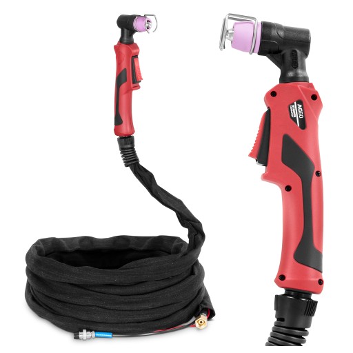 Palnik plazmowy marki Stamos Germany pozwala na precyzyjne i łatwe przecięcie różnych metali. Urządzenie pozwala uzyskać wysoką wydajność przecinarki. Akcesorium nadaje się do wykorzystania z prądem o natężeniu do 60 A, cykl pracy wynosi 60%. Napięcie znamionowe palnika plazmowego wynosi 500 V. Palnik pewnie leży w dłoni, obudowa ochronna nadaje się nawet do wymagających prac. Przepływ 160 l/min pozwala na niezawodne chłodzenie planika i wytworzenie stabilnego łuku plazmowego. Dołączony przewód o długości 5 m pozwala na swobodę ruchów. Wyposażony w złącze gazowe z gwintem M16x1,5.