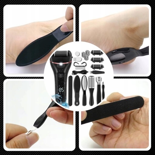 ELEKTRYCZNY PILNIK DO STÓP DO PIĘT LED MEGA ZESTAW PILNICZEK + NASADKI IPX7