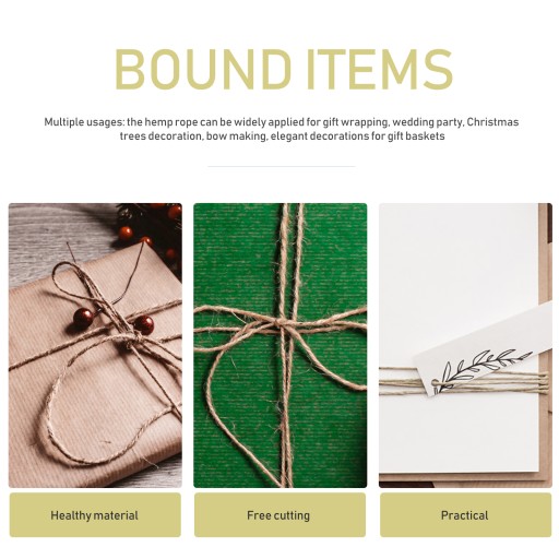 ✅Multiple usages: the hemp rope can be widely applied for gift wrapping, wedding party, Christmas trees decoration, bow making, elegant decorations for gift baskets, stairs, doors, porches, windows and so on, meeting your different needs.