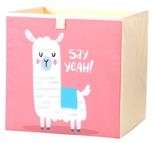 Materiałowe pudełko do przechowywania to idealny wybór dla dzieci, które chcielibyśmy nauczyć się po sobie sprzątać zabawki. Dzięki łatwej dostępności umożliwia szybkie wyjmowanie i odkładanie rzeczy. Pudełko z wizerunkiem alpaki i różowym nacięciem rozweseli każdy pokój dziewczynki.