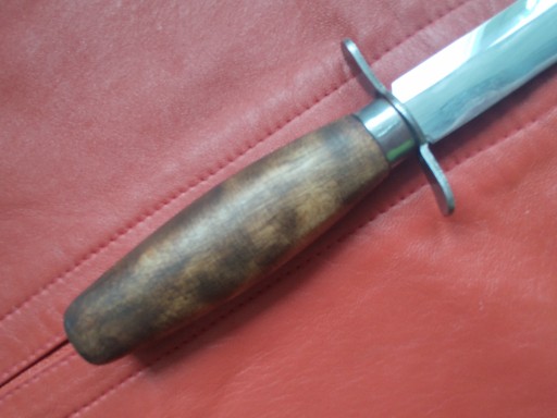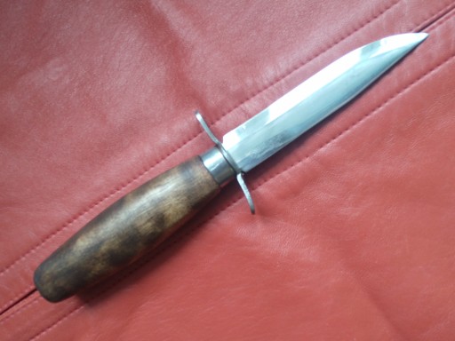 Nóż z mojej kolekcji Frosts MORA, MADE IN SWEDEN LAMINATED STEEL sygnowany na OSTRZU dł.21,5cm, ostra cm, oprawiony w drewno afrykańskie, bardzo drogie i piękne. NÓŻ wykonany po II POŁOWIE XX wieku w pięknym stanie wizualnym jak i technicznym - bardzo ostry, co widać na załączonych zdjęciach. - jak nowy. Jak by coto///602///333///153///będzietaniej. Koszt wysyłki pokrywa KUPUJĄCY. Na innych aukcjach wystawiam podobne.
