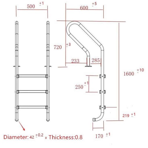 Лестница для бассейна из нержавеющей стали, 3 ступени, 1600 мм