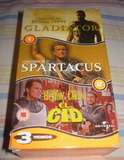 GLADIATOR, SPARTACUS, EL CID, 3 кассеты VHS