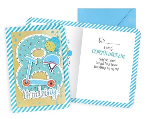 Kartka B6 z ozdobnej serii Dream Cards na Urodziny dziecięce - nieduża, ale robi wrażenie dzięki atrakcyjnej kolorystyce i ciekawym zdobieniom.