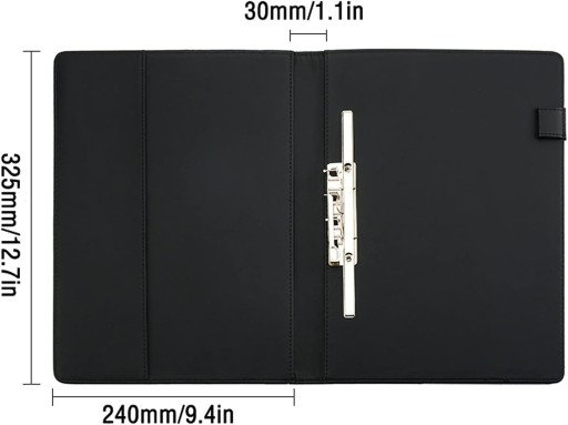- Design: Elegancki czarny kolor i proste linie nadają tej teczce nowoczesny wygląd.