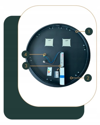 - Zasilanie - dotknij włącznik na tafli lustra, aby włączyć lub wyłączyć podświetlenie,