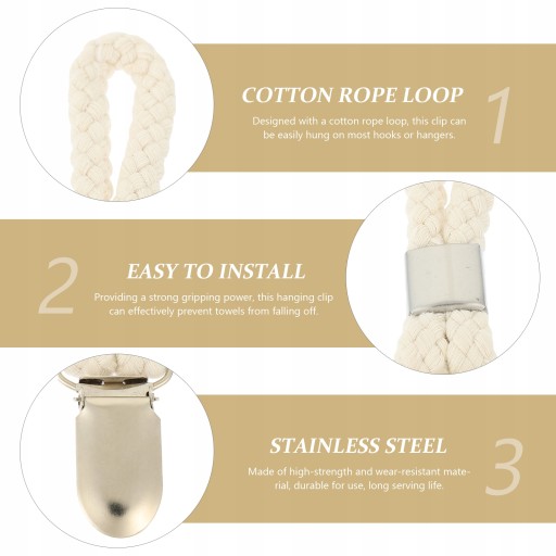 Szukasz wielofunkcyjnego klipsa z pętlą? Jeśli, spójrz dalej! Nasz produkt musi spełniać potrzeby. Wykonany z dobrej bawełnianej liny i materiału ze stali nierdzewnej, trwały i wytrzymały do długotrwałego użytku. Drobne wykonanie zapewnia jego praktyczność i trwałość.