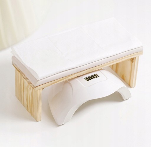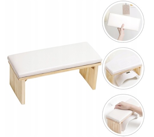 Pod drewnianym stojakiem podpórki na dłonie jest wystarczająco dużo miejsca, które można wykorzystać do umieszczenia narzędzia do fototerapii paznokci.