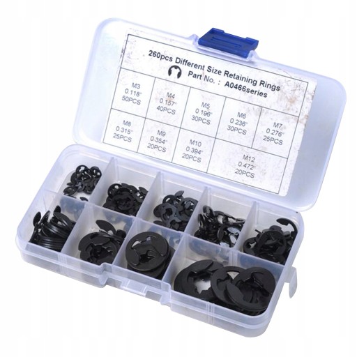 260 Sztuk Ustal Ustalający Zestaw Pierścieni Zatrzaskowych 9 Rozmiarów