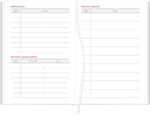 Miejsce na notatki przy każdym dniu roku szkolnego oraz dodatkowe tabele dedykowane dla nauczycieli i wychowawców pomogą w planowaniu zadań i organizowaniu zajęć dla uczniów.