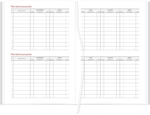- plan lekcji nauczyciela - tabela na I i II semestr
