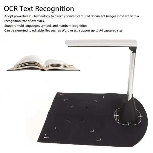 [Rozpoznawanie tekstu OCR] Zaawansowana technologia OCR, skaner ten bezpośrednio konwertuje przechwycone obrazy dokumentów na tekst z dokładnością ponad 98%. Obsługuje rozpoznawanie wielu języków, symboli i liczb, może eksportować do edytowalnych formatów plików, takich jak Word lub TXT. Obsługuje format do A4.