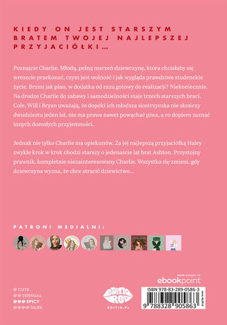 Jednak nie tylko Charlie ma opiekunów. Za jej najlepszą przyjaciółką Haley zwykle krok w krok chodzi starszy o jedenaście lat brat Ashton. Przystojny prawnik, kompletnie niezainteresowany Charlie. Wszystko się zmieni, gdy dziewczyna wyzna, że chce stracić dziewictwo...