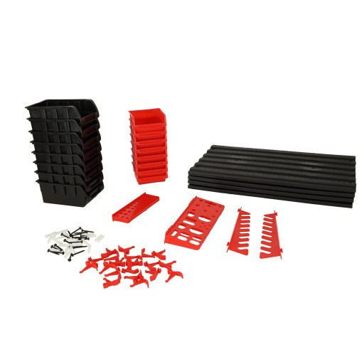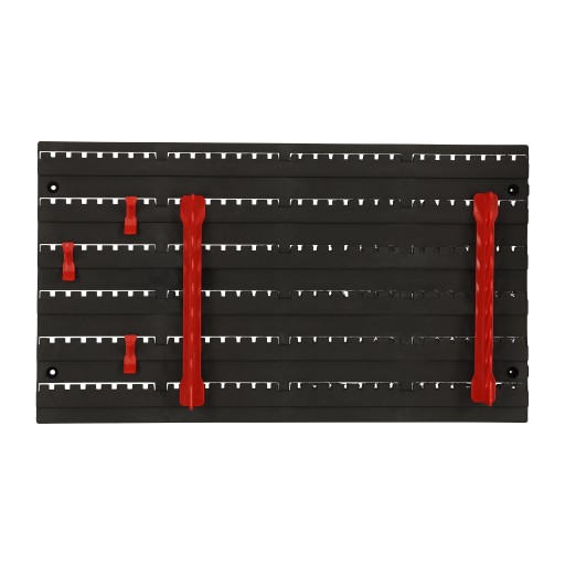 Skonstruowany z myślą o organizacji, składa się z dwóch paneli oraz wielu elementów do przechowywania narzędzi. Znajdziesz tu kuwety na drobne elementy, półki na klucze, haczyki, oraz koszyki na większe narzędzia. Możesz dostosować rozmieszczenie elementów do swoich potrzeb, dzięki specjalnej konstrukcji, która umożliwia zawieszenie półek i kuwet w dowolnym miejscu. Twoje ulubione narzędzia będą zawsze pod ręką.