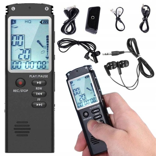 Do dyktafonu można podłączyć różnego rodzaju akcesoria, takie jak słuchawki, mikrofon, przewód telefoniczny. Wszystkie otrzymujesz w zestawie, razem z dyktafonem!