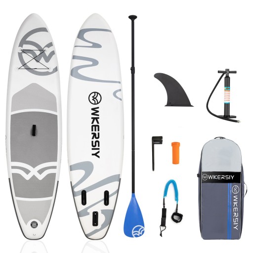Wyjątkowo szeroka konstrukcja SUP ułatwiająca rozpoczęcie wdrażania i utrzymanie równowagi. Wykonane z wysokiej jakości materiału, który jest sztywny, sztywny i elektroniczny. Miękka, antypoślizgowa podkładka pokładowa EVA poświęcona zagrożeniom i bezpieczeństwu podczas stania. Szybko napełnia się i opróżnia, co ułatwia przenoszenie. Idealne dla dorosłych, nastolatków i młodzieży ze zwierzętami na każdym poziomie umiejętności.