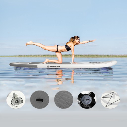 Bardzo szeroka konstrukcja SUP ułatwia początkującym wstanie i utrzymanie równowagi. Wykonany z wysokiej jakości materiału, który jest sztywny, sztywny i wytrzymały nadmuch. Miękka antypoślizgowa podkładka EVA znacznie poprawiła stabilność i bezpieczeństwo podczas stania. Szybko napełnia się i opróżnia, co zapewnia przenośność. Świetne dla dorosłych, nastolatków, młodzieży ze zwierzętami na wszystkich poziomach zaawansowania.