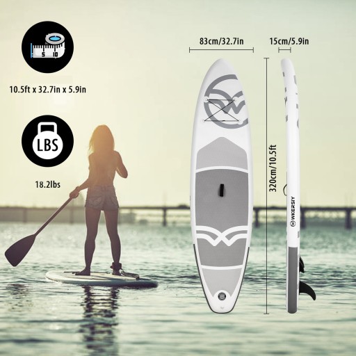 Mierzy 10,5 stopy długości i 32,7 cala szerokości, wyjątkowo szeroka konstrukcja ułatwia początkującym wstanie i utrzymanie równowagi.