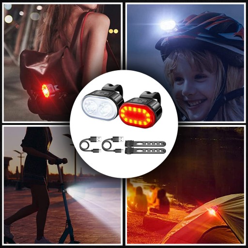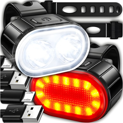 MOCNA LAMPKA ROWEROWA PRZEDNIA TYLNA LED WODOODPORNA AKUMULATOR USB ZESTAW