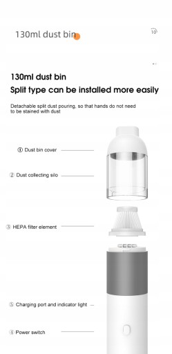 【Easy Maintenance】- The cordless car vacuum filter and dust cup are removable and reusable, easy to clean.