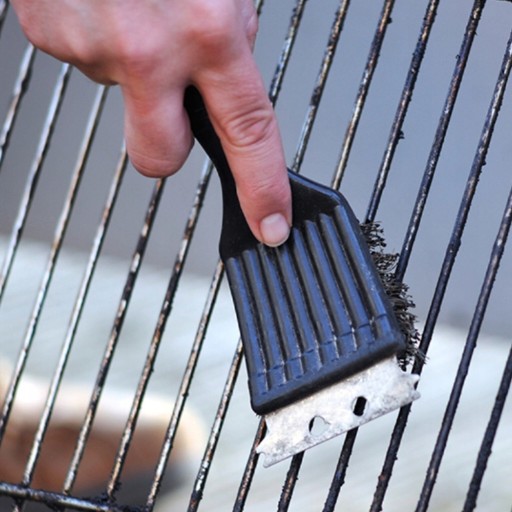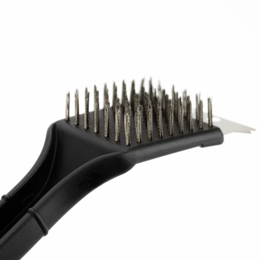 - Szczotka ma również skrobaczkę, z którą usuniesz przypieczone resztki jedzenia z rusztu.
