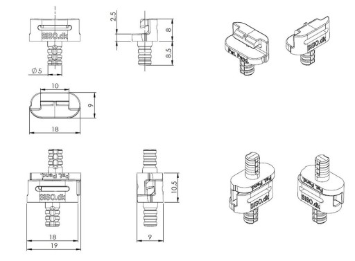 Złącze meblowe do półek niewidoczne TEMARI 10 kompletów SISO