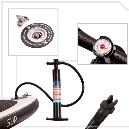 - pompkę ręczną z manometrem, która umożliwi Ci szybkie i łatwe napompowanie deski