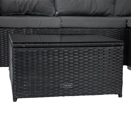 ✅Stół w oplocie z technorattanu z eleganckim, ciemnym blatem szklanym,