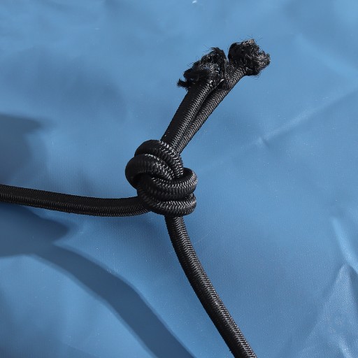 - Plandeka PCV: wodoodporna, odporna na promieniowanie UV, gruba tkanina. Trwały materiał plandekowy w kolorze niebieskim, wyjątkowo wytrzymała lina gumowa ekspander w kolorze czarnym oraz wysokiej jakości okrągłe oczka wykonane z aluminium (średnica 20 mm).