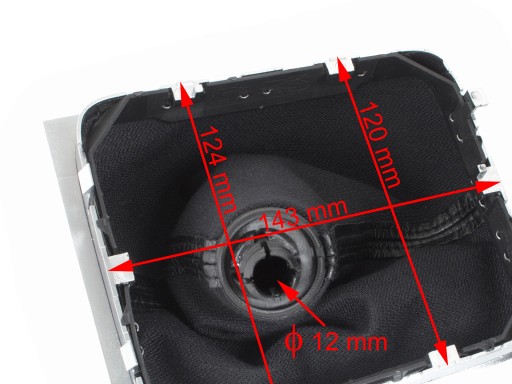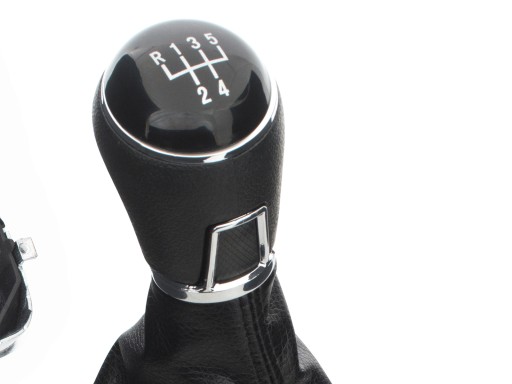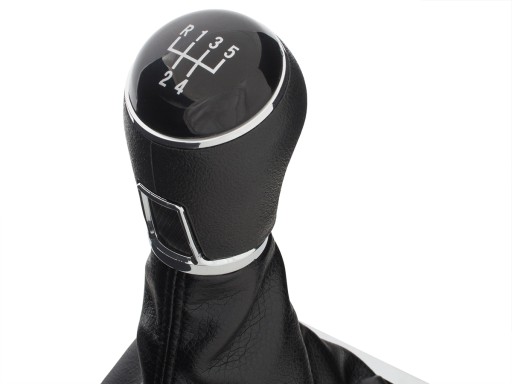 Schemat: 5 biegów + R, nakładka w kolorze czarnym z chromowym pierścieniem i białym schematem
