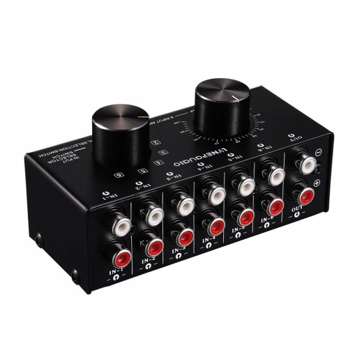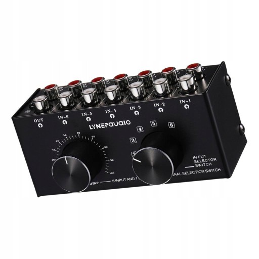 6-kanałowy przełącznik wyboru sygnału audio stereo z funkcją regulacji głośności wyjściowej,