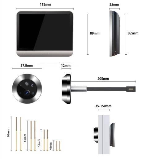 Za pomocą kamery 1080P 100 ° szerokokątny obiektyw, automatyczne przełączanie czułości widzenia w dzień/w nocy (regulowana; Odległość wynosi około 3-4 metrów), kolorowy wyświetlacz LCD TFT, nadaje się do obrazów i filmów AHD. Wykrywanie ruchu (czujnik ruchu PIR może automatycznie wykrywać ruch ciała i wyzwalać wiadomości i filmy push (przechowywane na karcie TFT lub telefonie komórkowym) w ciągu kilku sekund, zachowując sejf domowy 24 godziny na dobę. Łatwo zmaksymalizować bezpieczeństwo w domu z wyraźnym widokiem na drzwi.