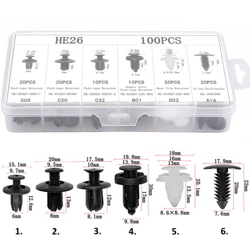 ✅Zawiera 6 najpopularniejszych rodzajów klipsów, powszechnie stosowanych w większości samochodów;