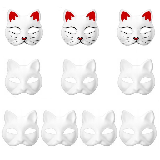 10 sztuk twarz kota pół twarzy niedokończone Paintable papierowe maski puste maski maski na maskaradę na imprezę Halloween Cosplay