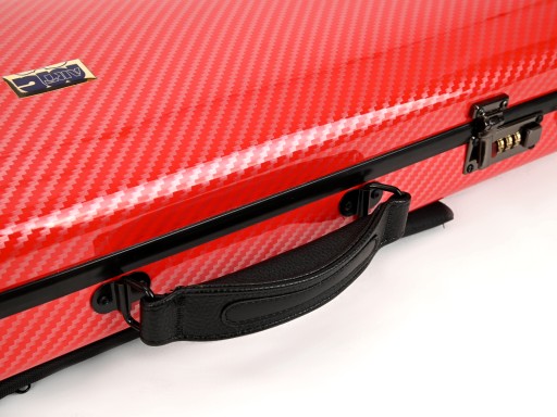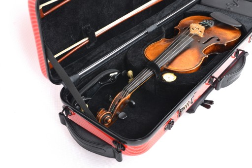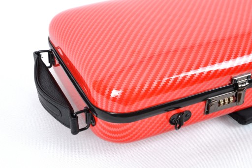 Lekki, prostokątny futerał na skrzypce wykonany z kompozytu poliwęglanu i ABS.
