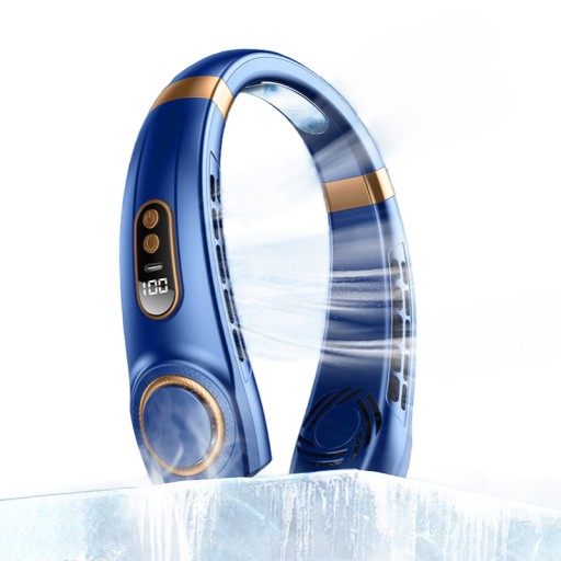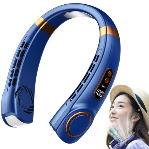 Wieszakowy Wentylator na Szyję z Kolorowym Oświetleniem LED - Niebieski