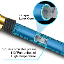 - ROZCIĄGLIWA KONSTRUKCJA - rozciągliwy wąż ogrodowy automatycznie rozszerzy się do 3-krotnej pierwotnej długości pod normalnym ciśnieniem, a po zamknięciu kurczy się do pierwotnej długości węża w ciągu kilku minut. Rozszerzający się wąż wodny wykorzystuje 4-warstwowy rdzeń lateksowy o wysokiej gęstości i wysokowydajną powłokę z tkaniny poliestrowej 3750D, aby zapobiec pękaniu i wyciekom.