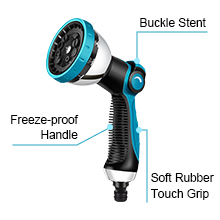 Ergonomiczny uchwyt ułatwia obsługę. Gumowa powłoka zewnętrzna jest antypoślizgowa i wygodna i nie odpadnie łatwo, nawet jeśli jest mokra. Jeśli chcesz stale rozpylać wodę, możesz użyć sterowania kciukiem, który oszczędza pracę i jest łatwy w obsłudze.