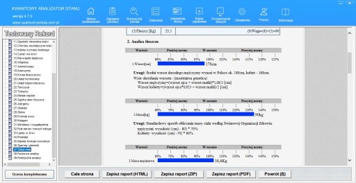 Kwantowa Analiza Stanu Zdrowia obejmuje: