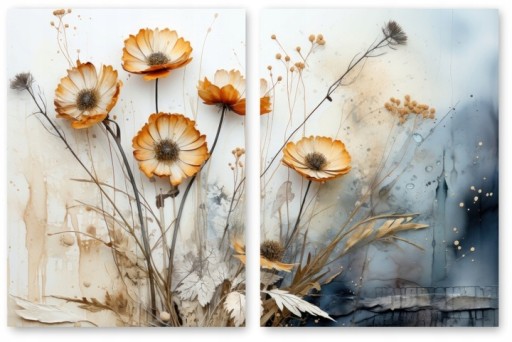 BOHO ROŚLINY SUCHE KWIATY zestaw 2 plakaty 40x50cm obraz beż trawy #379