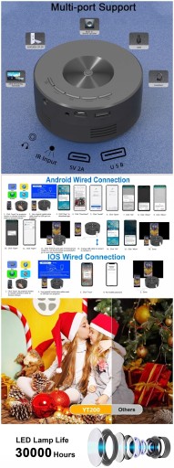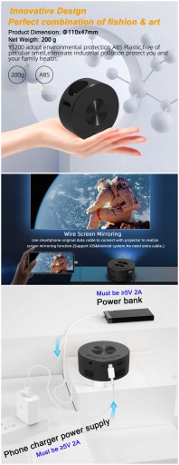 Wired screen projection, using a cable to connect a smartphone to the projector to project the screen, supports both iOS and Android.