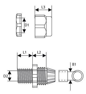 Typ D1[mm] D2[mm] L1[mm] L2[mm] L3[mm] B1[mm] Zakres średnic przewodów [mm] PG16 21,0 17,4 10,0 16,8 19,6 12,4 10-14