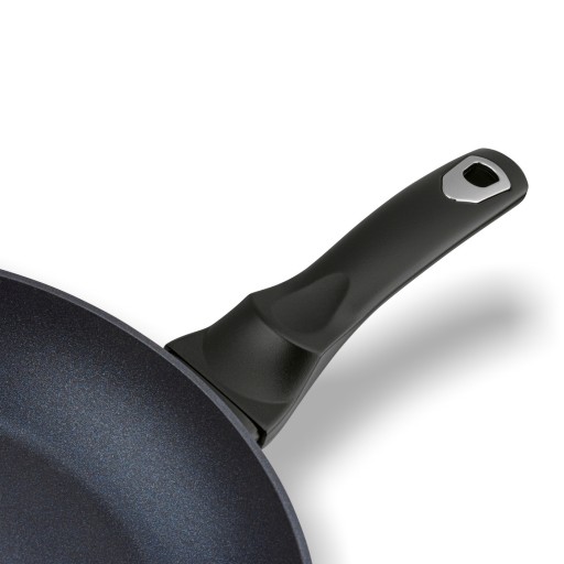 Element 4: patelnia z pokrywą, - średnica: 28 cm, - wymiary: 48,5 x 29 x 13,5 cm, - wysokość rantu: 5 cm, - średnica pola grzewczego: 20,5 cm